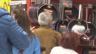 Deținător al unor vouchere, Nicolae Văcăroiu s-a uitat preț de o oră la niște oale de firmă, a cântărit ofertele și a ascultat opinia soției, apoi și-a cumpărat produsele dorite.