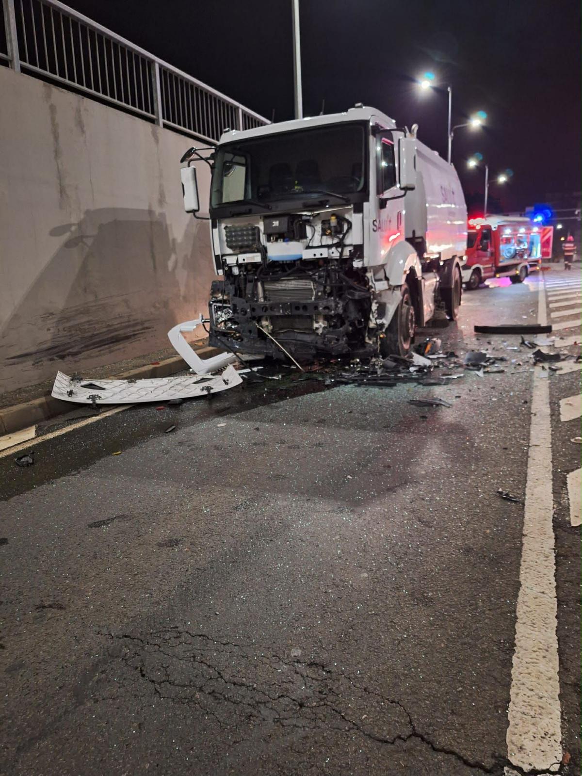 Accidentul s-a produs între un autoturism în care se aflau două persoane și o autoutilitară pentru salubrizare, în care se afla doar șoferul.