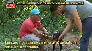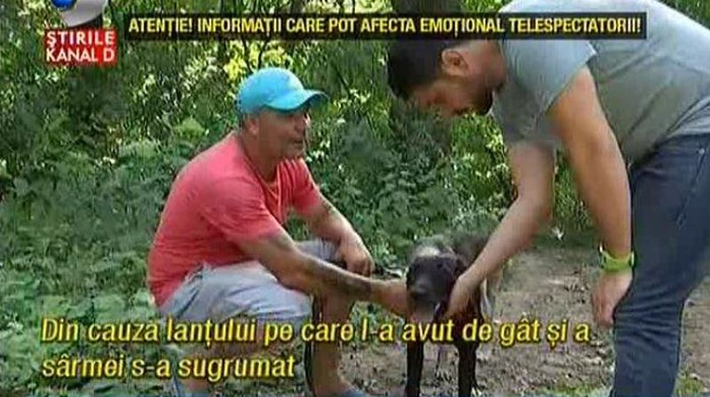 Din cauza lantului pe care l-a avut de gat si a sarmei s-a sugrumat si nu I s-a mai oxigenat creierul si avea pur si simplu capul dublu, ochii plini de sange.