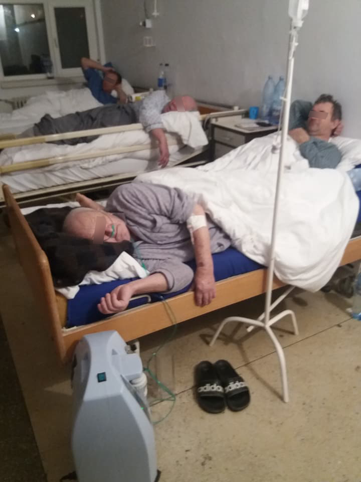 Situatie strigatoare la cer in Spitalul Municipal din Barlad, unde au fost surprinse imagini dramatice. Pacientii internati la sectia Cardiologie au ajuns sa stea cate doi intr-un pat, cand sunt conectati la aparatul de oxigen.