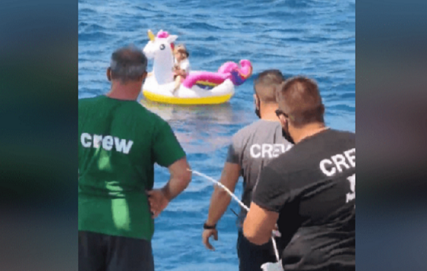 Membrii echipajului au salvat atât fata, cât şi unicornul gonflabil
