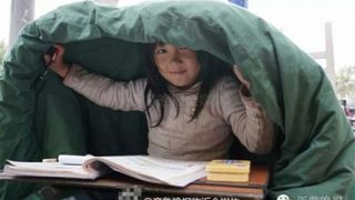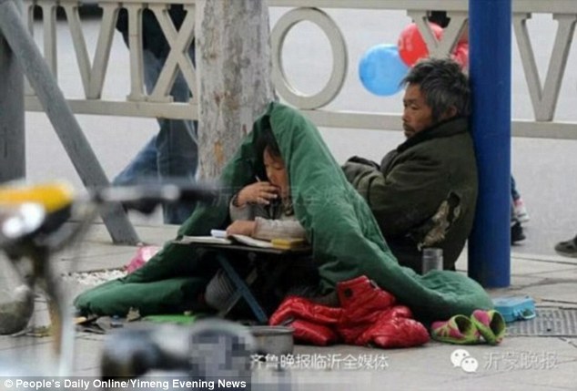 Imaginile cu o fetita in varsta de 6 ani din China care isi face temele pe strada in frig alaturi de tatal ei care cerseste au facut inconjurul lumii.