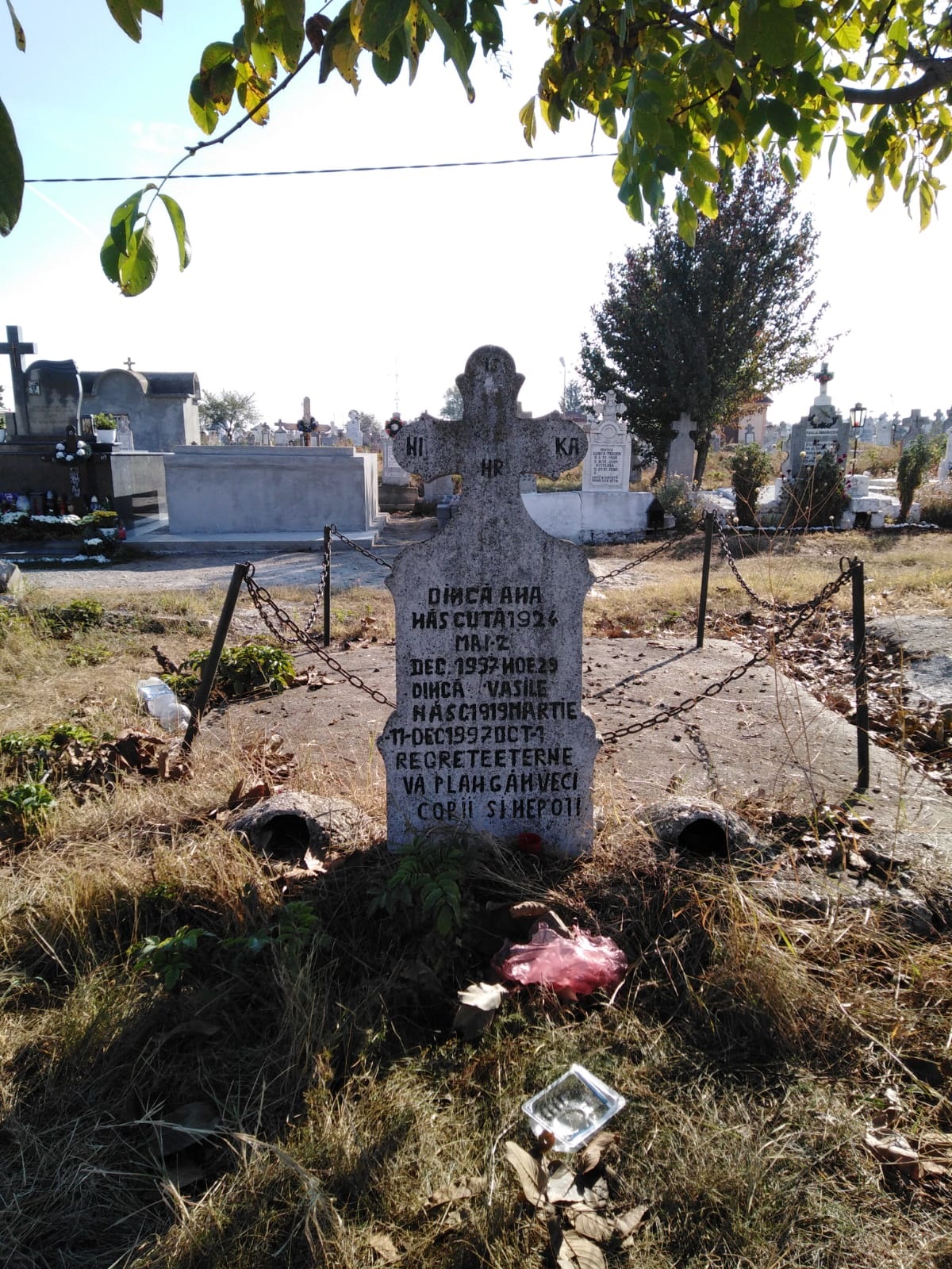 În imagini se pot observa mormanele de gunoaie ce ”patronează” locul de veci al lui Gheorghe Dincă, acolo unde părinții bărbatului au fost înmormântați. Mai mult de cât atât, și buruienile au crescut, semn că nimeni nu s-a îngrijit de mormânt.