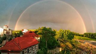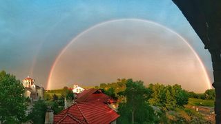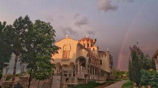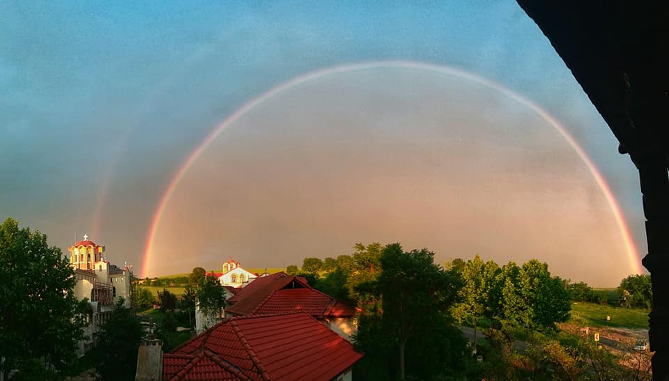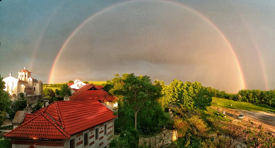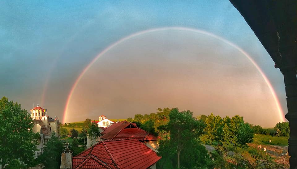 Zilele trecute, după o furtună care a răvășit zona, deasupra mănăstirii Dervent a apărut un curcubeu extraordinar, fotografiat de Efrem, care a postat pozele și a scris următoarele în dreptul lor: ”Cateva clipe petrecute in Rai! Acum...la