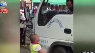 Cam asa suna interpretarea facuta cel mai des. Totusi, parintii n-ar trebui sa-i lase pe cei mici in astfel de situatii. Soferul rade, dar cine stie cum ar reactiona altcineva!
