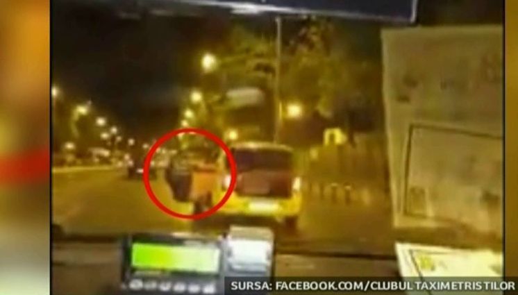 Taxi-ul din imagini merge pe prima banda, cu avariile pornite. Pare ca ar vrea sa opreasca pentru a lua clienti! Daca va uitati cu atentie, portiera din stanga este deschisa! Ceva o blocheza.