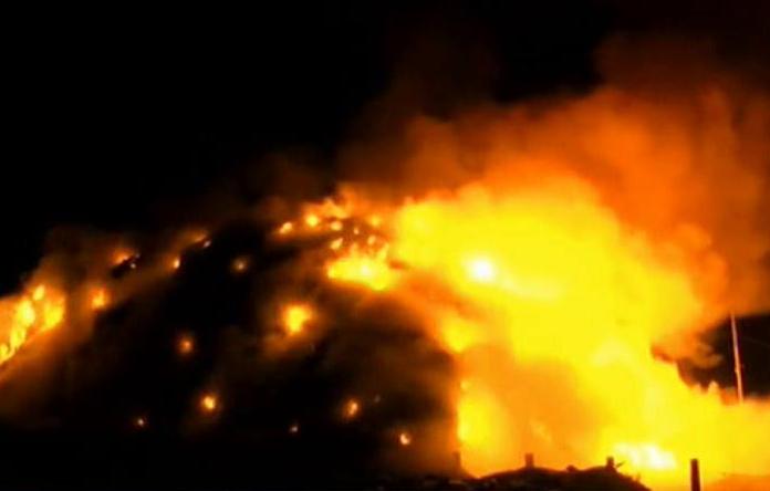 Flacarile, inalte cat un bloc de 8 etaje, au inghitit rapid groapa de gunoi.