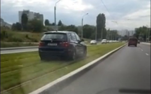 Tupeul in trafic nu are limite. Un sofer bucurestean a fost surprins in timp ce conducea un bolid BMW pe spatiul verde al liniei de tramvai de pe bulevardului Liviu Rebreanu, din sectorul 3.