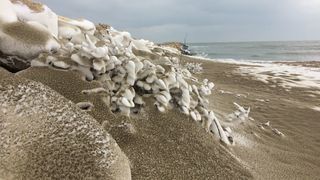 Desi pare a fi un peisaj de pe Marte sau o alta planeta indepartata, imaginile au fost surprinse pe plaja din Constanta de catre reporterii Kanal D.