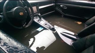 3 din 3 | Imagini incredibile. O mașină Porsche ultimul răcnet, înghițită de ape pe o stradă din Constanța