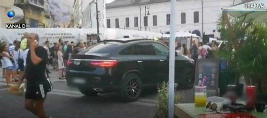 Imagini incredibile vin de la Craiova, unde un sofer a intrat cu masina de teren intr-o zona pietonala