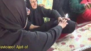 Desi femeia din imagine ar putea suferi de o boala mintala, priviti cum paramedicul e lasat in urma! Pentru viata necunoscutei aflata in plina criza, decide o batrana- ruda, se pare, cu cea spre se-atintesc acum toti ochii pelerinilor.