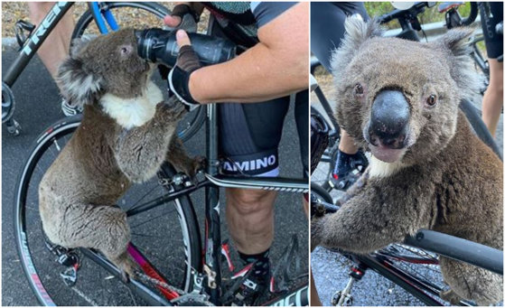 Imagini emoționante cu un urs koala, bând apă, au făcut înconjurul lumii. Animalul grav afectat de temperaturile ridicate din sudul Australiei s-a pus în fața unui grup de cicliști, pentru a cere apă.