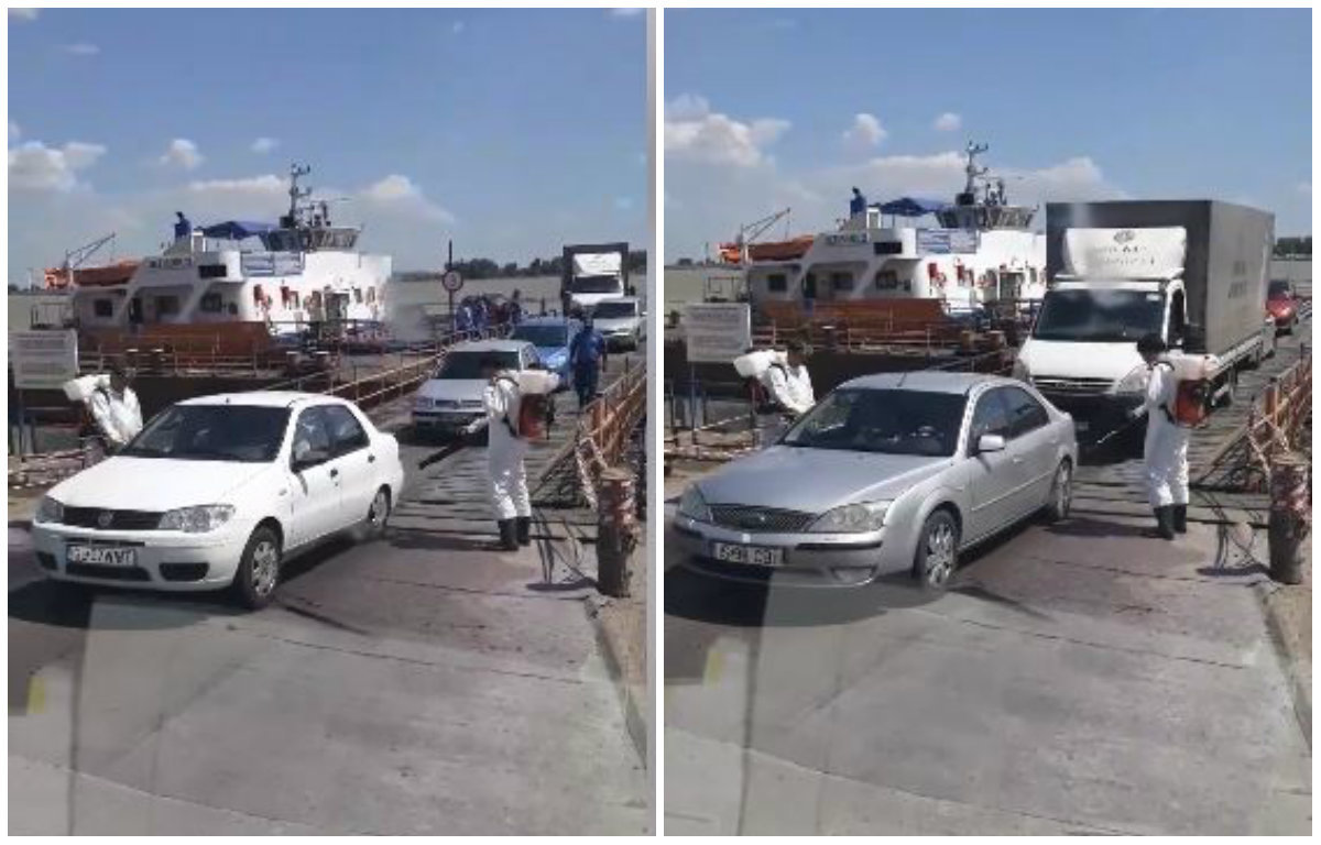 In plina epidemie de pesta porcina africana, toate masinile care coboara de pe bac in Galati trebuie stropite cu o substanta care sa previna raspandirea virusului. Insa, ca de obicei, in Romania lucrurile se fac de mantuiala.