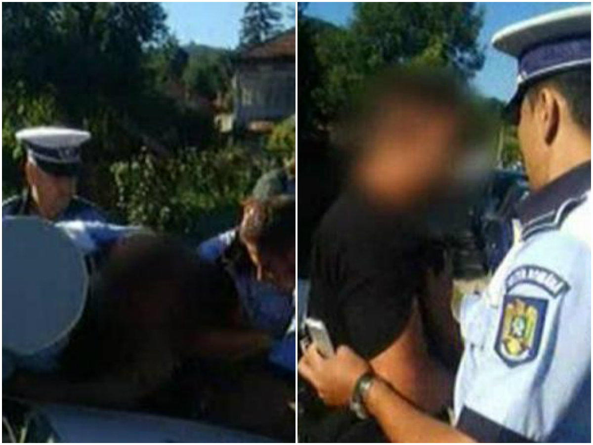 Barbatul a fost dus la sectia de politie, cu masina oamenilor legii, in timp ce in a lui s-a urcat un agent.