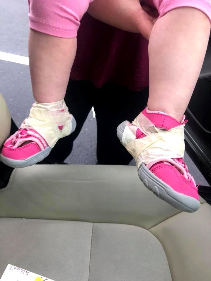 O mamica a fost socata cand a venit sa-si ia fetita de la cresa! Micuta avea pantofii lipiti de picior cu scotch! Revoltata, femeia a publicat imaginile pe Facebook!
