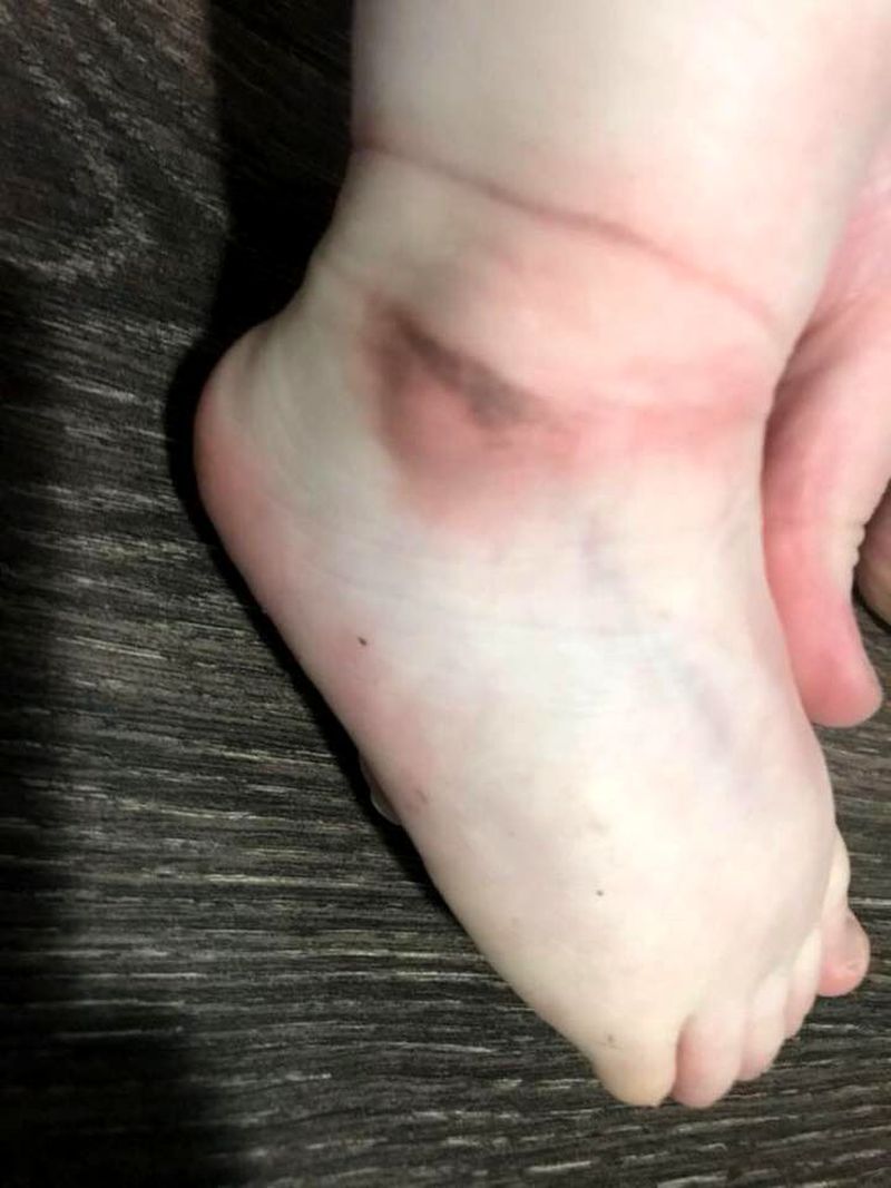 "Cineva a fost clar deranjat de faptul ca ea (fetita) invata sa-si de pantofiorii jos si a facut asta iritat fiind de situatie. Nu doar ca cineva i-a lipit pantofii cu scotch pus in jurul gleznei, copilul meu de 17 luni nu a fost incapabil sa spuna ceva. Acest lucru a durat suficient de mult si strans cat sa-i lase fetitei mele semne, umflaturi si vanatai", a scris Jessica pe reteaua de socializare.