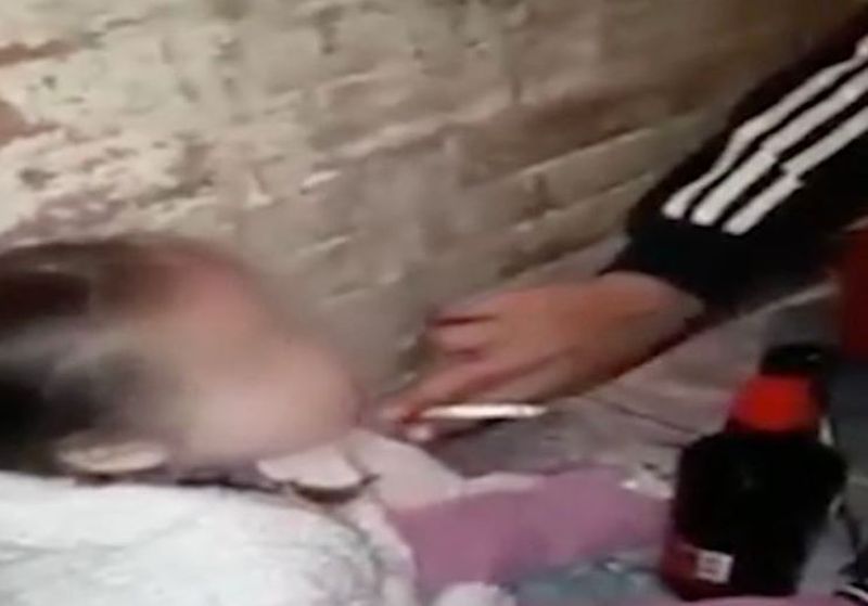 O filmare arata cum copilului ii este pusa sticla la gura, apoi tigara cu drogul marijuana. Din imagini, copilul nu pare a avea mai mult de 4 anisori.