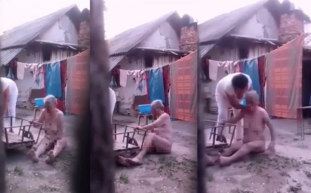 Un videoclip șocant a apărut recent pe internet. În imagini se paote vedea cum o femeie bătrână și neajutorară stă dezbrăcată, în noroi, în curtea casei. O altă femeie mai tânără insistă ca ea să se ridice, însă bătrâna este neputincioasă și repetă de mai multe ori că nu se poate ridica.