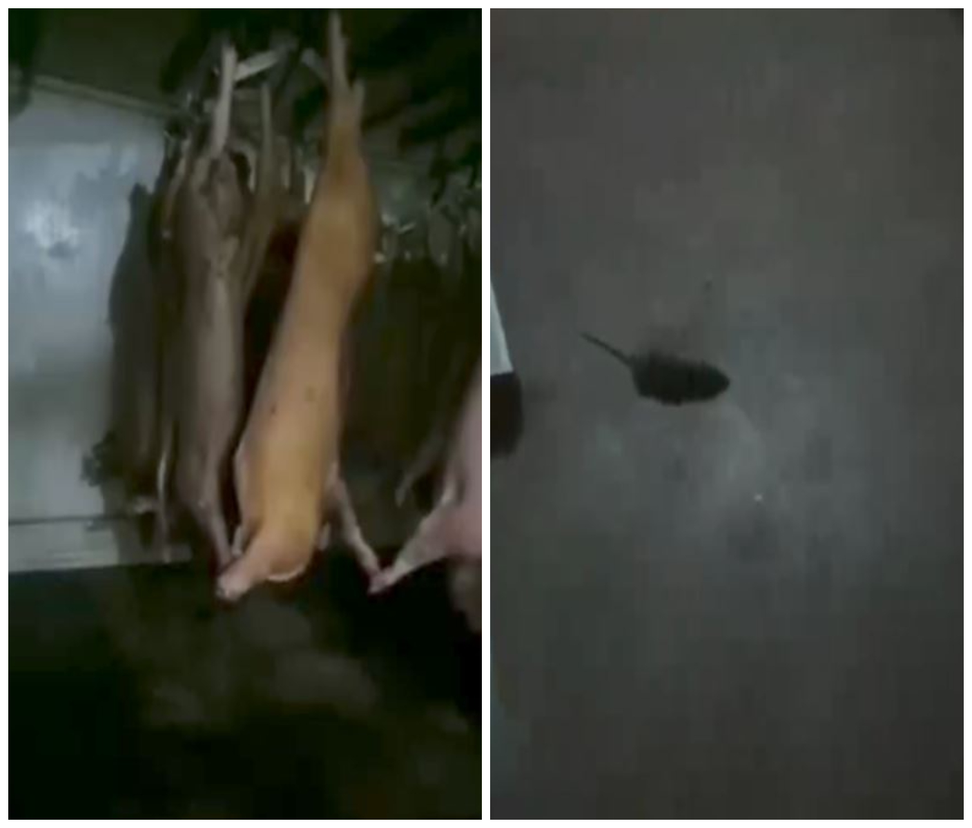 Imagini revoltătoare au fost surprinse într-un abator de porci din județul Maramureș. Un fost angajat a făcut publice câteva înregistrări în care arată cum o pisică gustă nestingherită din bucățile de carne expuse, dar și cum mai mulți șoareci morți zac pe podeaua abatorului.