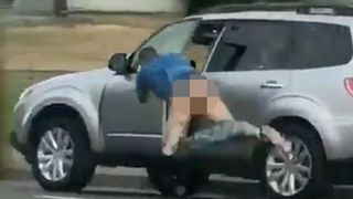 Imagini socante pe o autostrada din Kent, Washington. Un barbat, pe jumatate dezbracat, este tarat de o masina. Ceilalti participanti la trafic au scos telefoanele si au inceput sa filmeze.