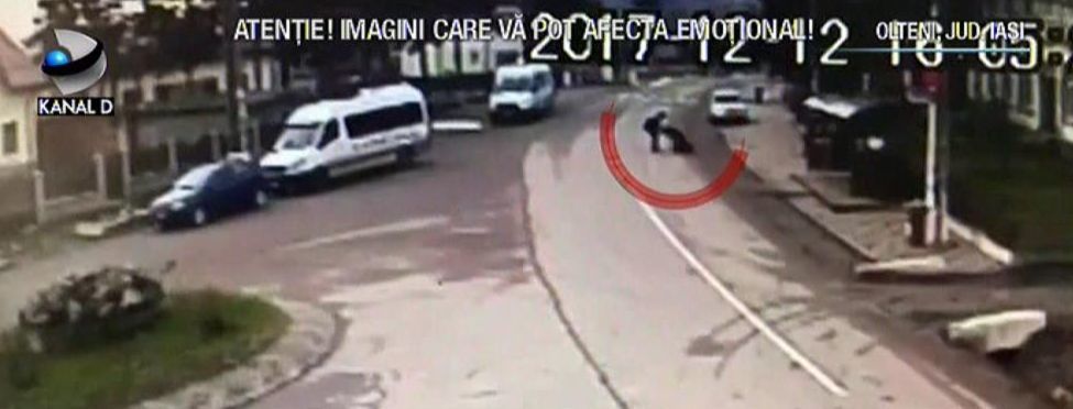 In scurt timp apare si o duba a politiei, iar agresorul este incatusat si dus la sectia de politie.