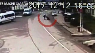 In imaginile surprinse de camera de supraveghere se vede cum individul in geaca albastra se indreapta, hotarat, spre politist. Il loveste cu piciorul, apoi cu pumnul. Este momentul in care omul legii il tranteste la pamant. Agresorul nu se lasa si ajung amandoi intr-o incaierare pe asfalt. Un martor care vede intreaga scena ii sare agentului de politie in ajutor si il imobilizeaza pe bataus.