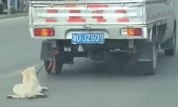 Imaginile au fost realizate in orasul Chaozhou, din provincia chineza Guandon, apoi a fost postat pe internet. Pe imagini se vede cum cainele este tarat de vehicul pe o strada aglomerata. La un moment dat, cainele incearca sa se opreasca, insa nu reuseste din cauza vitezei masinii.