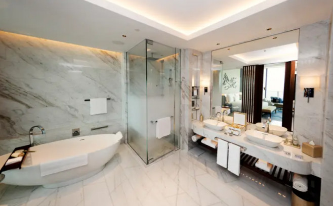 Hotelul este poziționat pe Pal Jumeirah, o insulă în formă de copac, recunoscută pentru hotelurile, apartamentele, precum și restaurantele sale opulente. Cel mai exclusiv apartament din hotel ajunge la prețul astronomic de 100.000 de dolari pe noapte, scrie Insider.