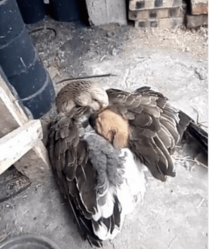Instinctul matern al păsării nu a lăsat-o să treacă nepăsătoare pe lângă cățeluș așa că a decis să-l încălzească cu aripile, arată livebizmedia.com.