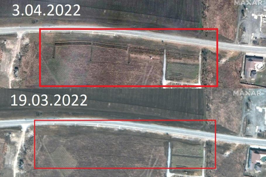 "Conform rapoartelor recente din mass-media, soldații ruși au adus în acest loc cadavrele persoanelor ucise în Mariupol. O analiză a imaginilor surprinse de satelitul nostru de la mijlocul lunii martie până la mijlocul lunii aprilie indică faptul că extinderea noilor morminte a început între 23-26 martie 2022 și a continuat în ultimele două săptămâni.
