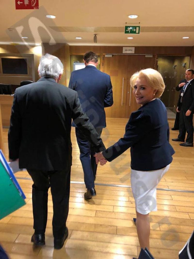 Viorica Dăncilă, premierul României, a fost surprinsă în timp ce se ţinea de mână cu nimeni altul decât Jean Claude Juncker, preşedintele Comisiei Europene. Cei doi sunt cunoştinţe mai vech, încă de pe vremea când Viorica Dăncilă era europarlamentar la Bruxelles.