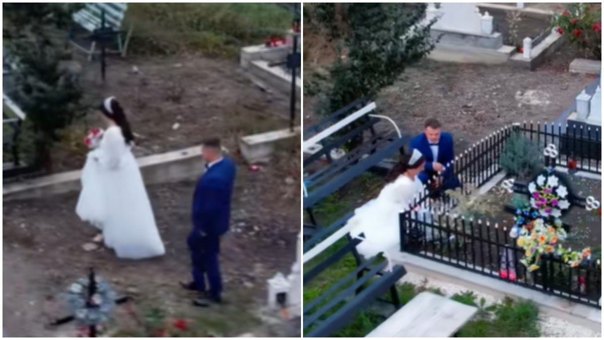 După ce s-au cununat religios, doi miri au mers în cimitir pentru a se reculege alături de persoanele dragi pe care le-au pierdut. Imaginile cu aceștia au emoționat România, iar videoclipul a ajuns viral, stârnind sute de reacții.