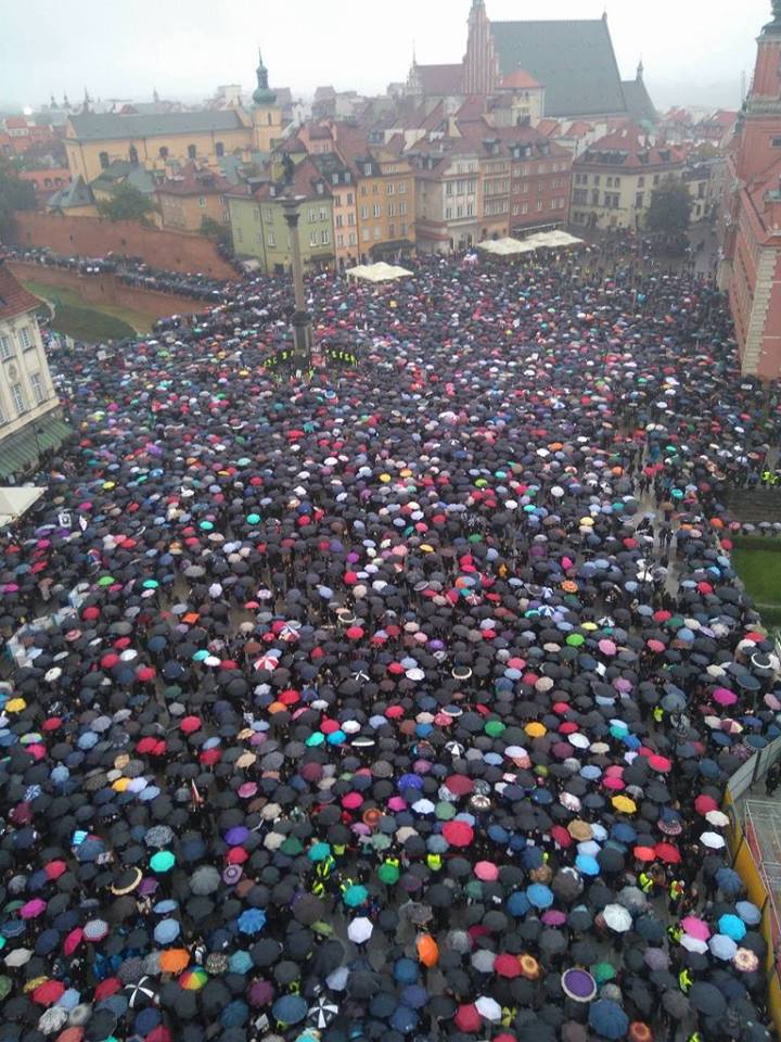Strazile din Varsovia au fost pline ochi. Imbracate in negru, tinand pancarte inscriptionate cu diferite mesaje, femeile au marsaluit pe strazi, apoi s-au adunat in fata Guvernului.