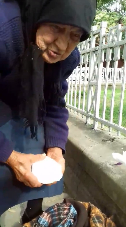 Imaginile acestea au devenit virale. Clipul a fost filmat in Focsani de catre un taximetrist impresionat de o batranica.
