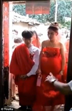 Inregistrarea video aparuta in mediul online ii arata pe cei doi tineri imbracati in rosu, potrivit traditiei chineze, cand isi jura credinta vesnica, inconujurati de parinti care par sa se bucure de acest moment.