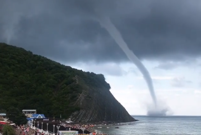 Imaginile dezastrului! O tornada a aparut din senin pe Marea Neagra si a bagat spaima in oamenii care se aflau pe plaja