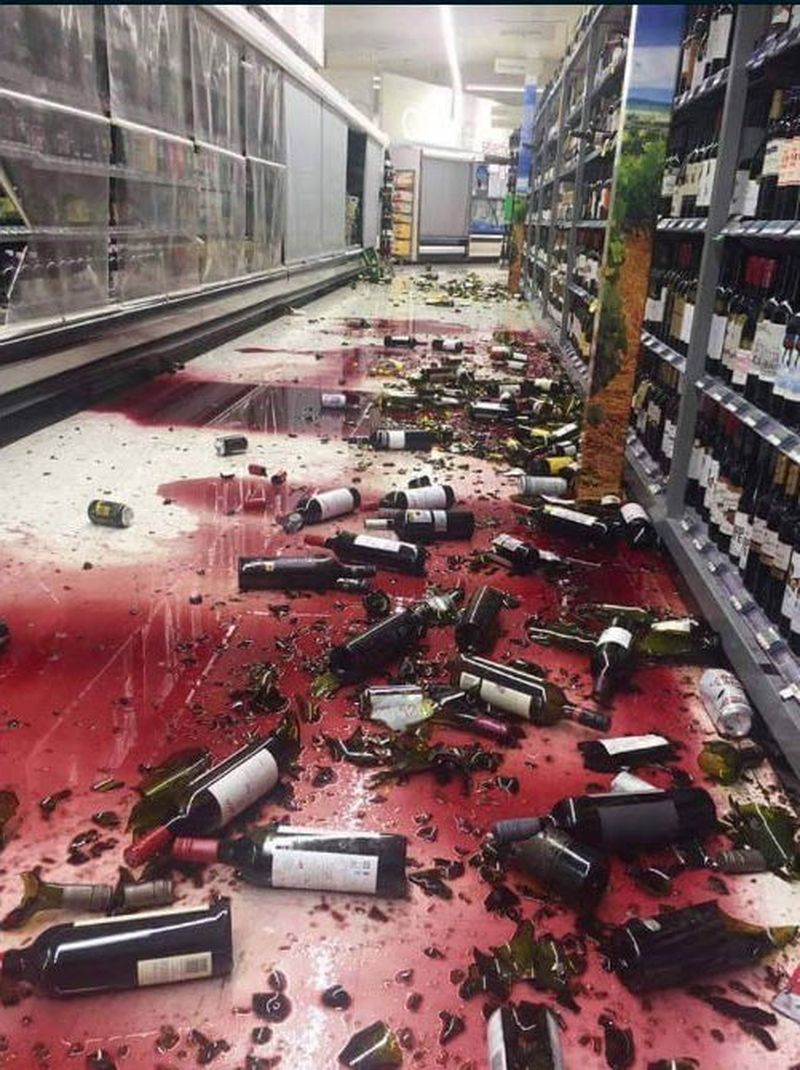 Drumurile s-au rupt in doua, marfa din mai multe supermarket-uri s-a facut una cu podeaua, iar mai multe case au fost distruse de intensitatea cutremurului.