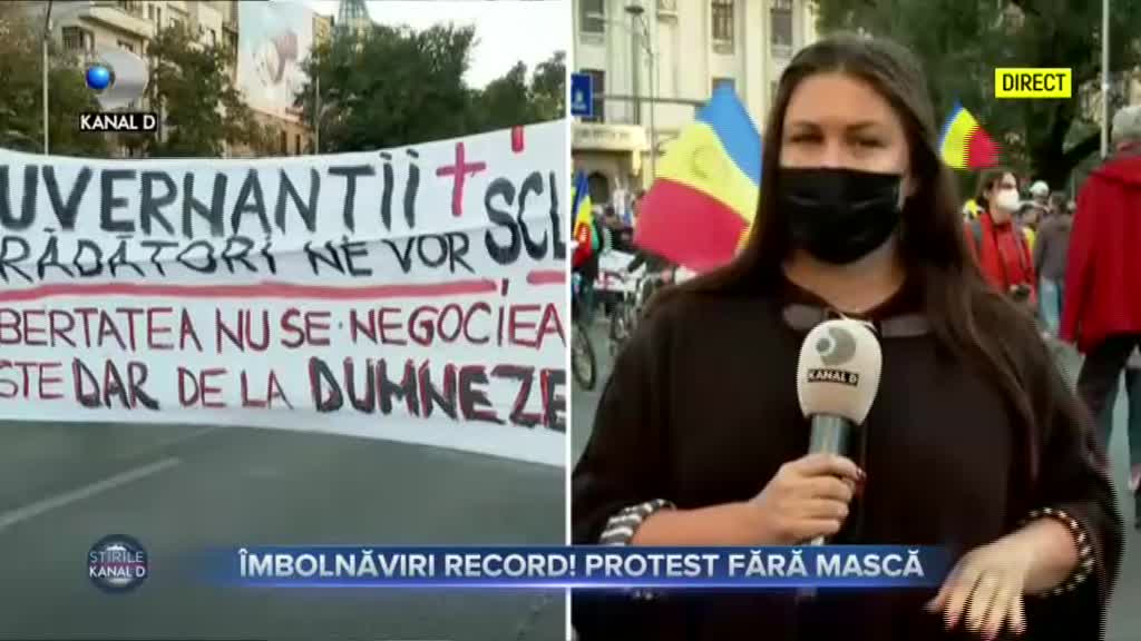 Stirea "Îmbolnăviri record. Protest fără mască" difuzata in cadrul Stirilor KANAL D din 2 10 2021