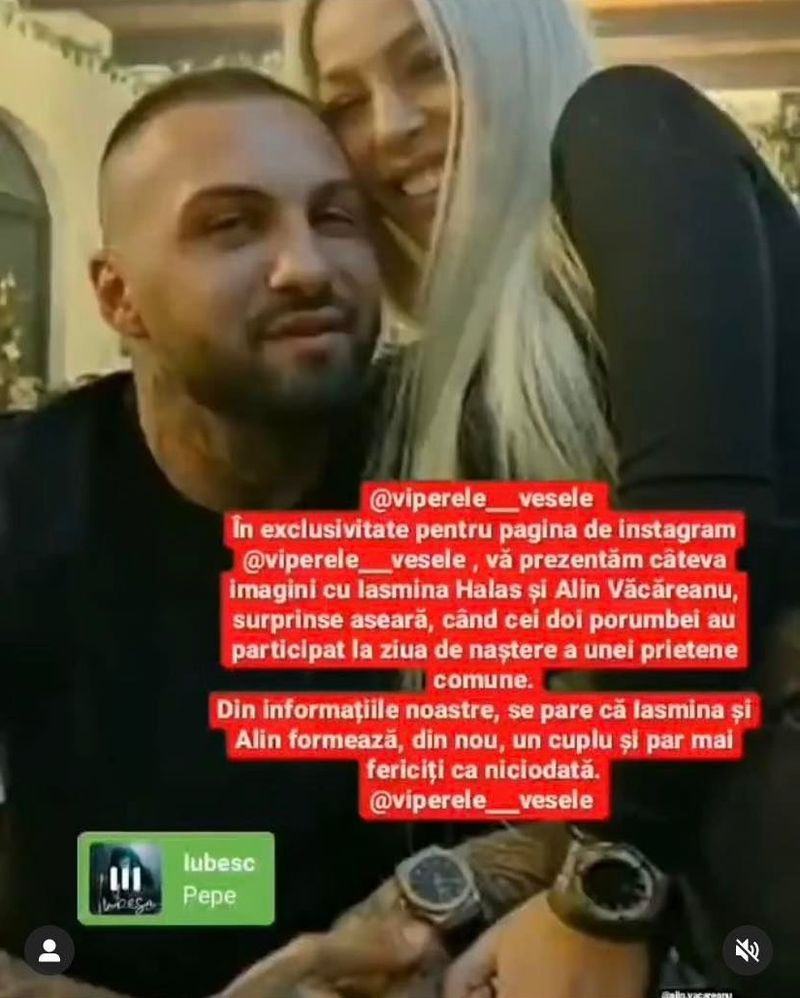 Potrivit informațiilor oferite de către pagina de Instagram @viperele___vesele, Iasmina și Alin au participat împreună la ziua de naștere a unei prietene comune. Din informațiile aceleiași surse, Iasmina și Alin formează din nou un cuplu și aceștia par mai fericiți ca niciodată.