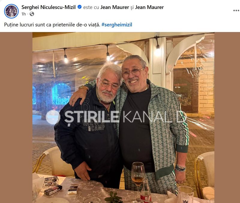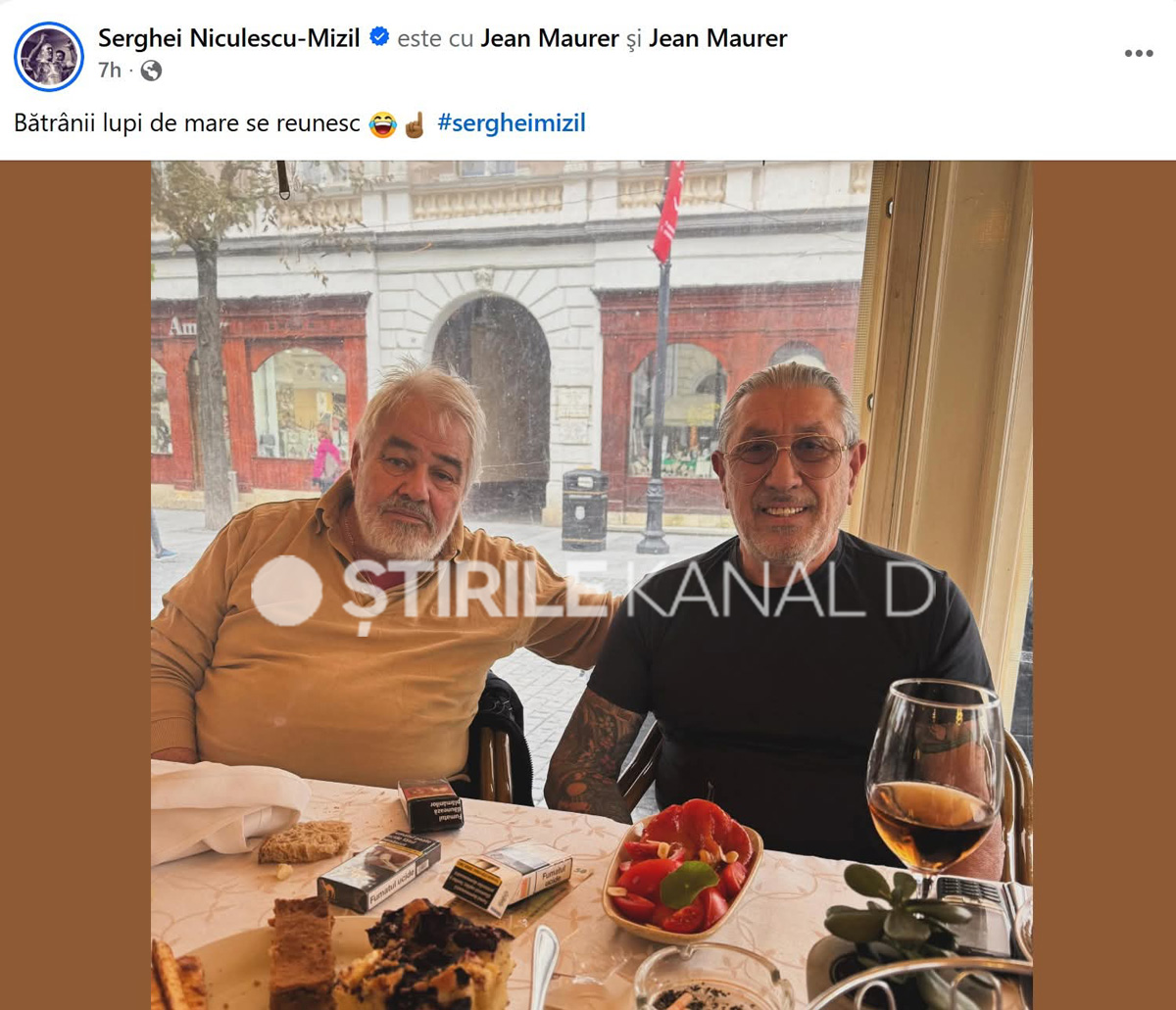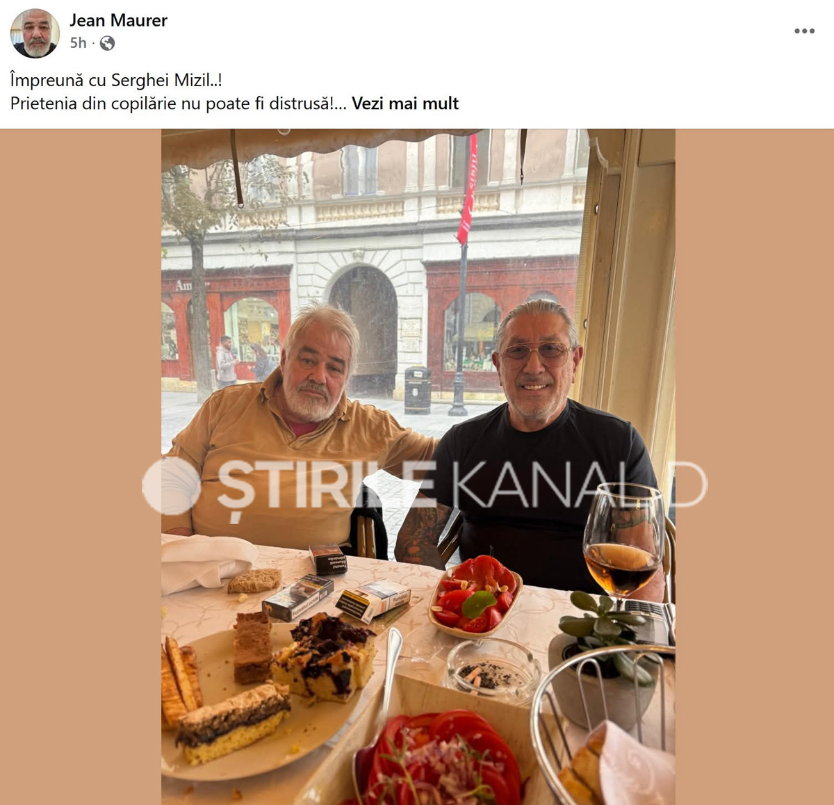 „Împreună cu Serghei Mizil..! Prietenia din copilărie nu poate fi distrusă!”, a scris Jean Maurer pe pagina sa, alături de fotografia în care cei doi stau la o masă acoperită de farfurii, prăjituri și pahare cu vin roșu, într-o terasă din centrul vechi al Sibiului.