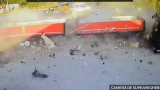 Impact fulgerator. Intr-o secunda, soferul unui TIR a spulberat totul in cale. Martorii spun ca poate i s-a facut rau la volan