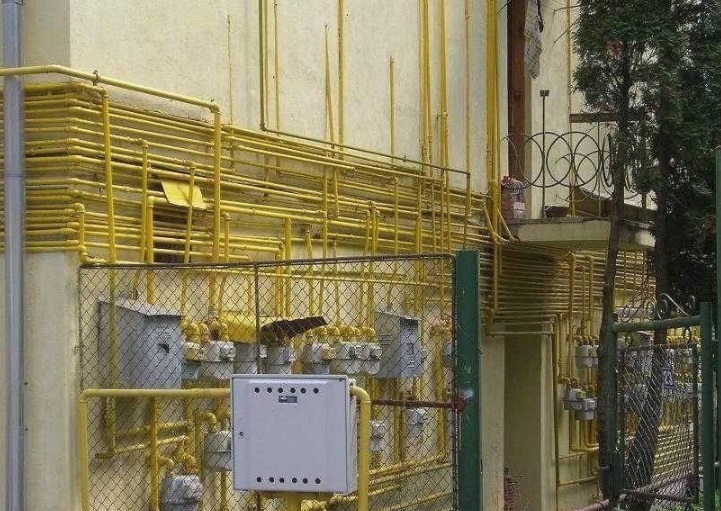 Exact ca o iedera, asa parca s-au urcat tevile de gaze pe cladire.