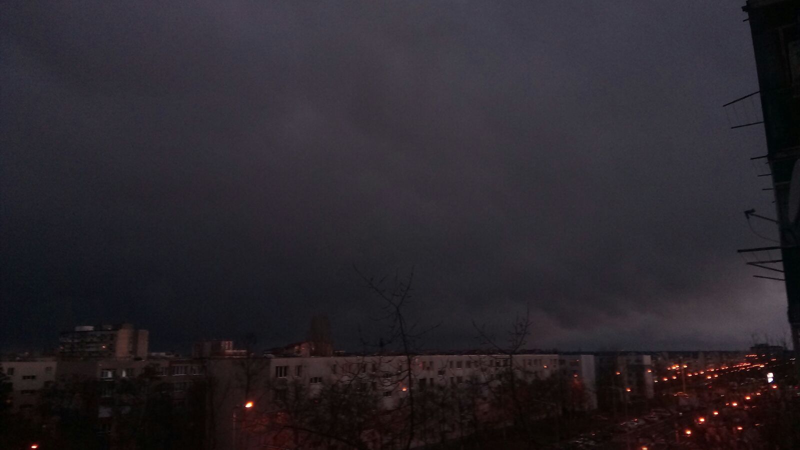 "In doar 10 minute am trecut de la cer senin la cer negru...Valea Ialomiţei, Drumul Taberei, sector 6.Ataşez fotografii", ne-a scris cititorul nostru.