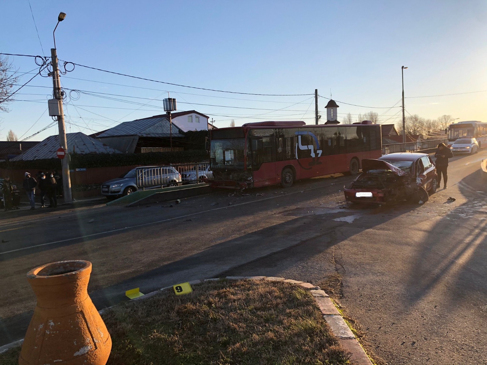 Un tânăr de 18 ani din Mărăcineni, județul Buzău, a intrat cu mașina într-un autobuz pe un pod din Buzău. Șoferul se deplasa pe direcția strada Alexandru Marghiloman către bulevardul 1 Decembrie 1918, iar în autoturism de mai aflau două tinere de 18 ani.