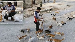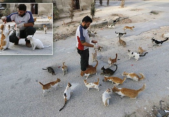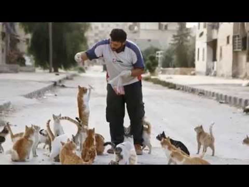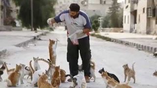 Mohammad Alaa Aljaleel, cunoscut si ca "omul pisica din Alep" are grija de mai bine de 100 de pisici ratacite sau abandonate de oamenii care fug din cauza razboiului civil din Siria.