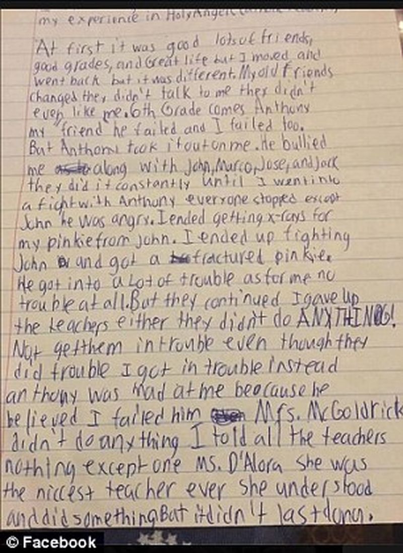 Daniel Fitzpatrick, un baiat in varsta de 13 ani din Islanda a decis sa isi puna capat zilelor in luna august anul acesta, lasand in urma o scrisoare de adio, prin care isi explica gestul. Parintii lui au facut publica acesta scrisoare, in speranta de a atrage atentia si altor parinti asupra problemelor cu care se confrunta copii la scoala.