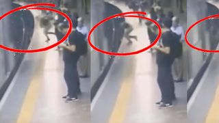 Incidentul a avut loc in statia Concepcion din orasul brazilian Sao Paolo. Un barbat imbracat in alb a impins o femeie chiar in fata trenului ce intra in statie. Din fericire, femeia a cazut intre sine, iar trenul a trecut peste ea. Victima a suferit doar o fractura la mana, dar martorii si imaginile arata ca totul se putea sfarsi tragic.