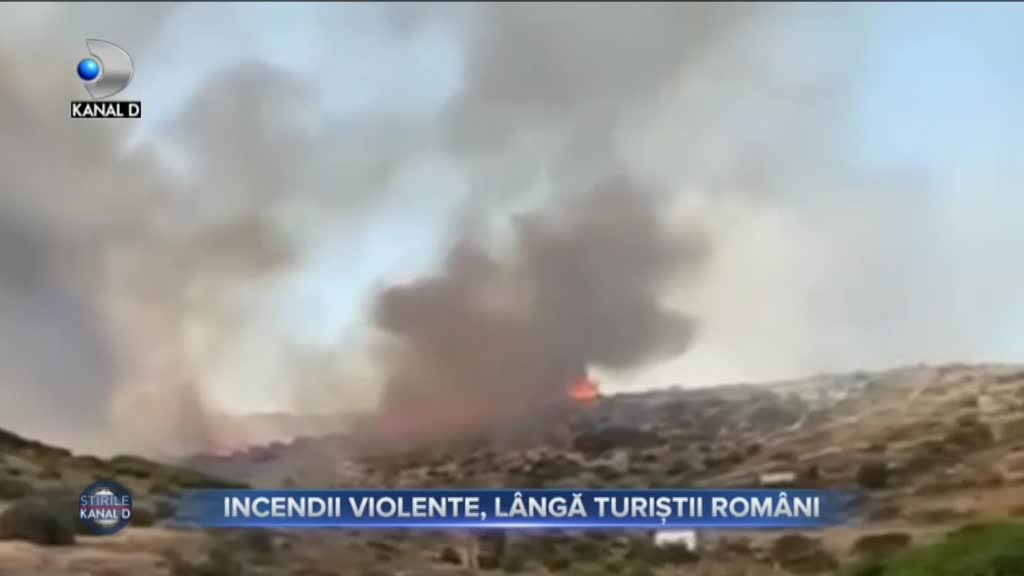 Stirea "Incendii violente lângă turiștii români" difuzata in cadrul Stirilor KANAL D din 5 07 2021