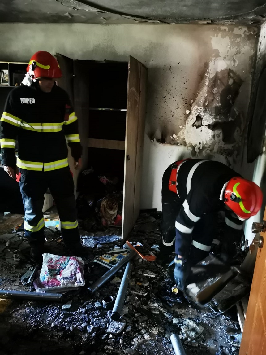 Ajunşi la faţa locului, pompierii au lichidat rapid incendiul, însă au decis să verifice starea celorlalţi locatari şi să îi evacueze pe aceştia, din cauza degajării de fum.